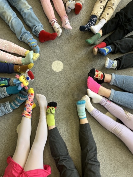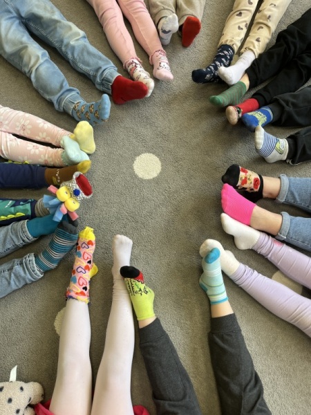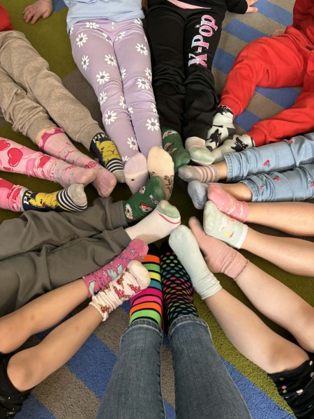 Na znak solidarności z osobami z Zespołem Downa dzieci założyły dwie różne skarpetki, a także przygotowały skarpetkowy teatrzyk 😉